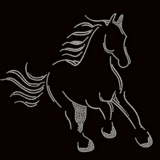 لوحة حصان من الأحجار اللامعة على قطعة مخمل ،